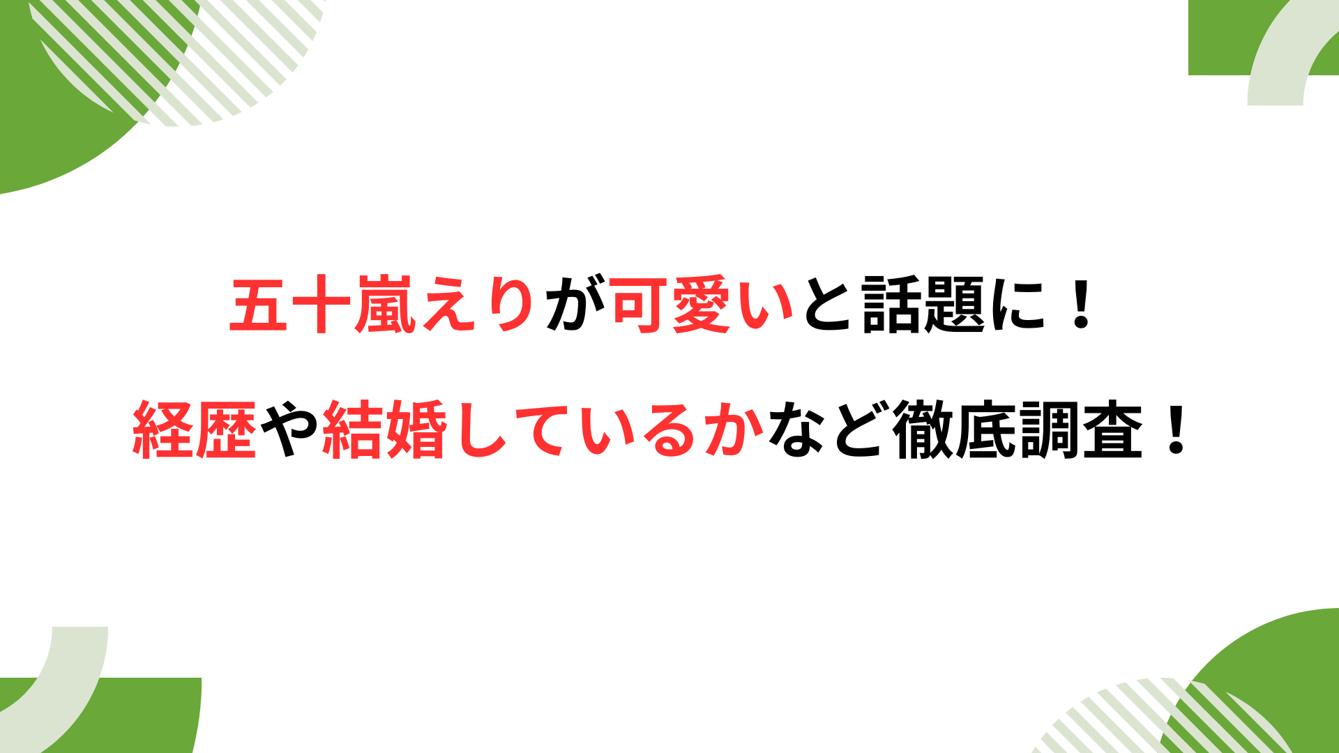 本記事では「五十嵐えりは何者?」「結婚しているの?」「どういう経歴なの?」といった疑問に答えていきたいと思います。
